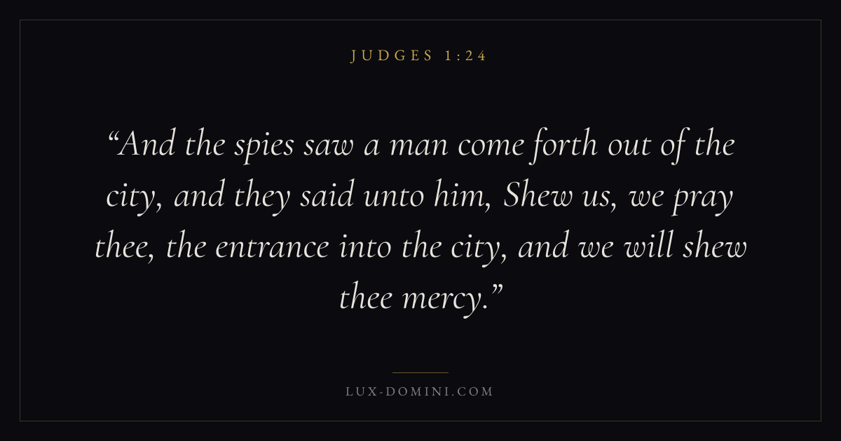 And the spies saw a man come forth out of the city, and they said unto him, Shew us, we pray thee, the entrance into the city, and we will shew thee mercy.