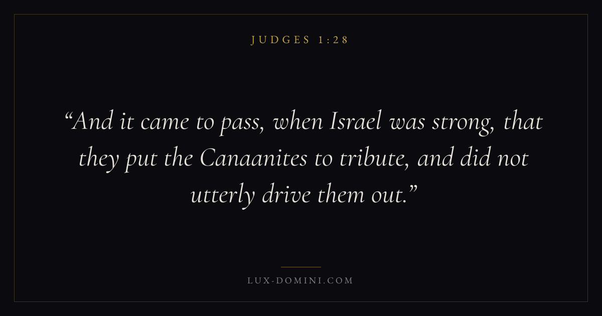 And it came to pass, when Israel was strong, that they put the Canaanites to tribute, and did not utterly drive them out.