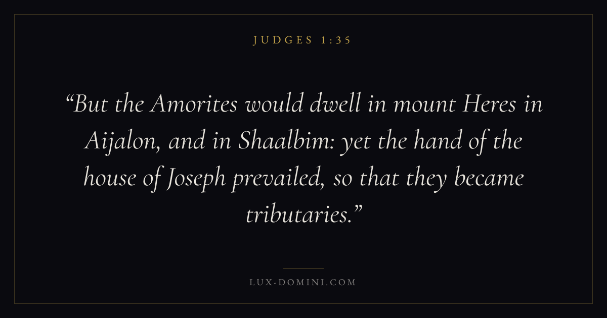 But the Amorites would dwell in mount Heres in Aijalon, and in Shaalbim: yet the hand of the house of Joseph prevailed, so that they became tributaries.