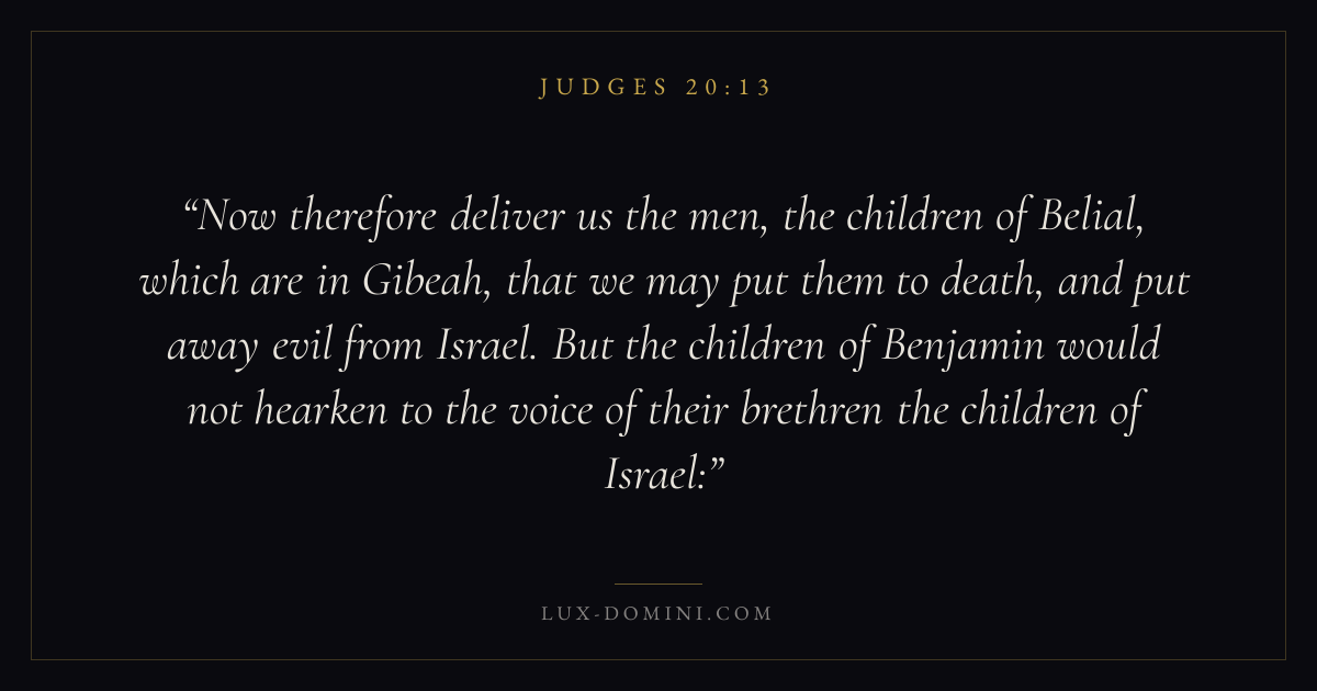 Now therefore deliver us the men, the children of Belial, which are in Gibeah, that we may put them to death, and put away evil from Israel. But the children of Benjamin would not hearken to the voice of their brethren the children of Israel: