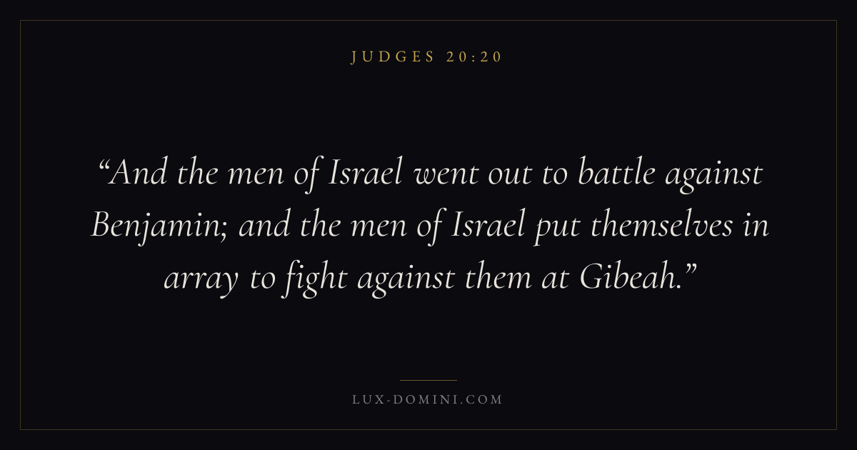 And the men of Israel went out to battle against Benjamin; and the men of Israel put themselves in array to fight against them at Gibeah.