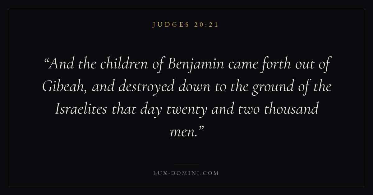 And the children of Benjamin came forth out of Gibeah, and destroyed down to the ground of the Israelites that day twenty and two thousand men.
