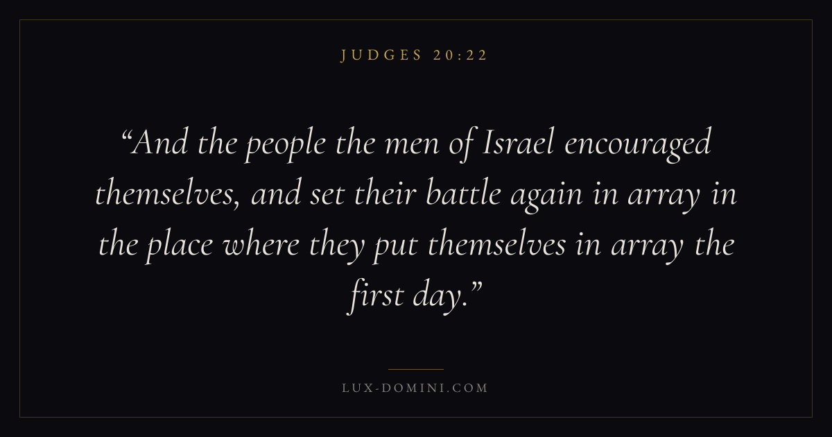 And the people the men of Israel encouraged themselves, and set their battle again in array in the place where they put themselves in array the first day.