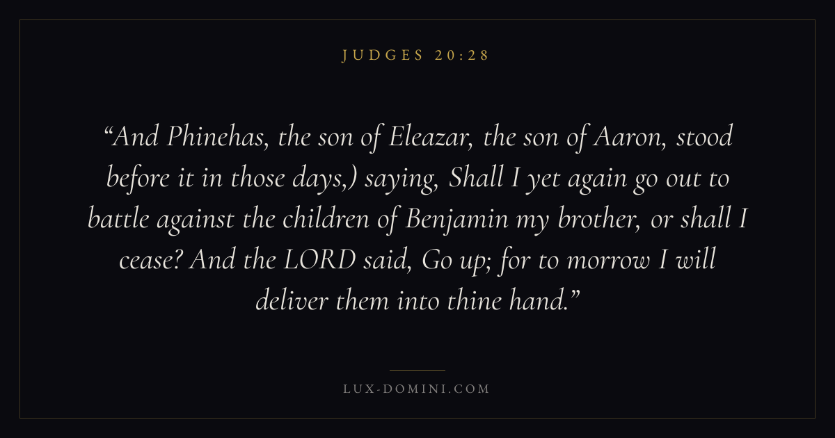 And Phinehas, the son of Eleazar, the son of Aaron, stood before it in those days,) saying, Shall I yet again go out to battle against the children of Benjamin my brother, or shall I cease? And the LORD said, Go up; for to morrow I will deliver them into thine hand.