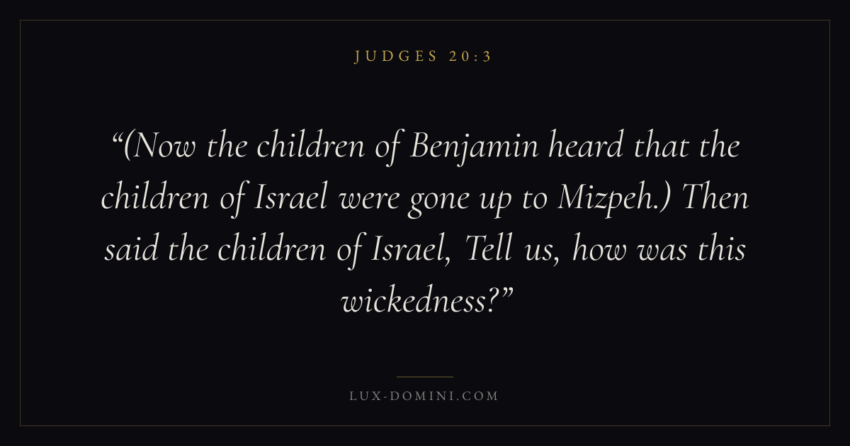 (Now the children of Benjamin heard that the children of Israel were gone up to Mizpeh.) Then said the children of Israel, Tell us, how was this wickedness?