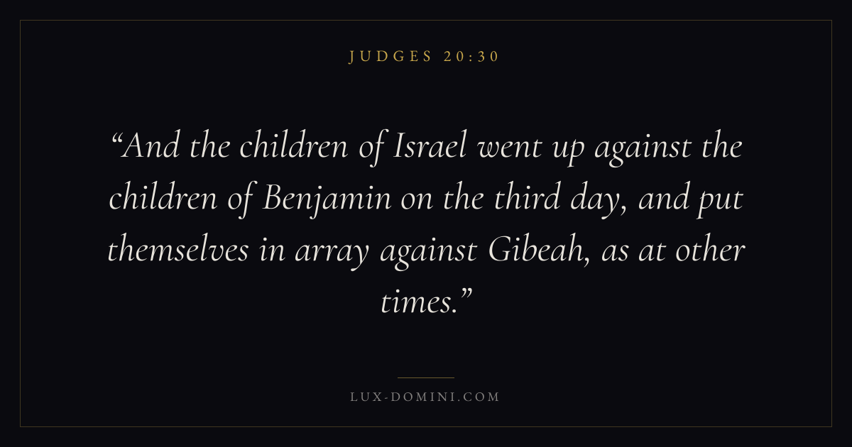 And the children of Israel went up against the children of Benjamin on the third day, and put themselves in array against Gibeah, as at other times.