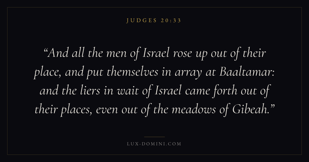 And all the men of Israel rose up out of their place, and put themselves in array at Baaltamar: and the liers in wait of Israel came forth out of their places, even out of the meadows of Gibeah.