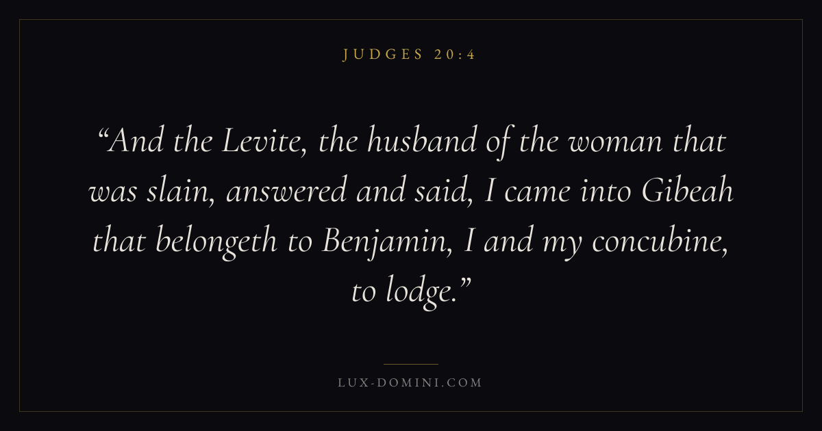 And the Levite, the husband of the woman that was slain, answered and said, I came into Gibeah that belongeth to Benjamin, I and my concubine, to lodge.