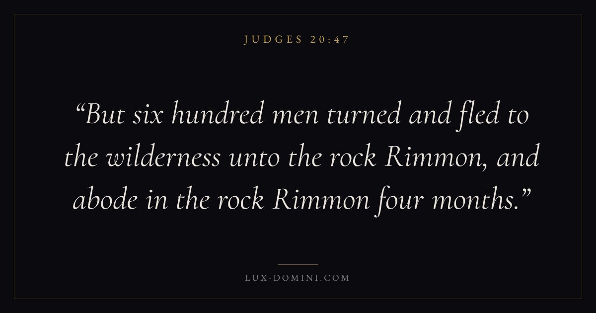 But six hundred men turned and fled to the wilderness unto the rock Rimmon, and abode in the rock Rimmon four months.