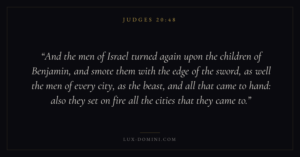 And the men of Israel turned again upon the children of Benjamin, and smote them with the edge of the sword, as well the men of every city, as the beast, and all that came to hand: also they set on fire all the cities that they came to.