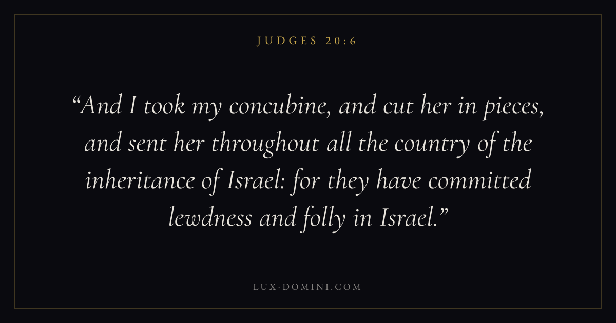 And I took my concubine, and cut her in pieces, and sent her throughout all the country of the inheritance of Israel: for they have committed lewdness and folly in Israel.