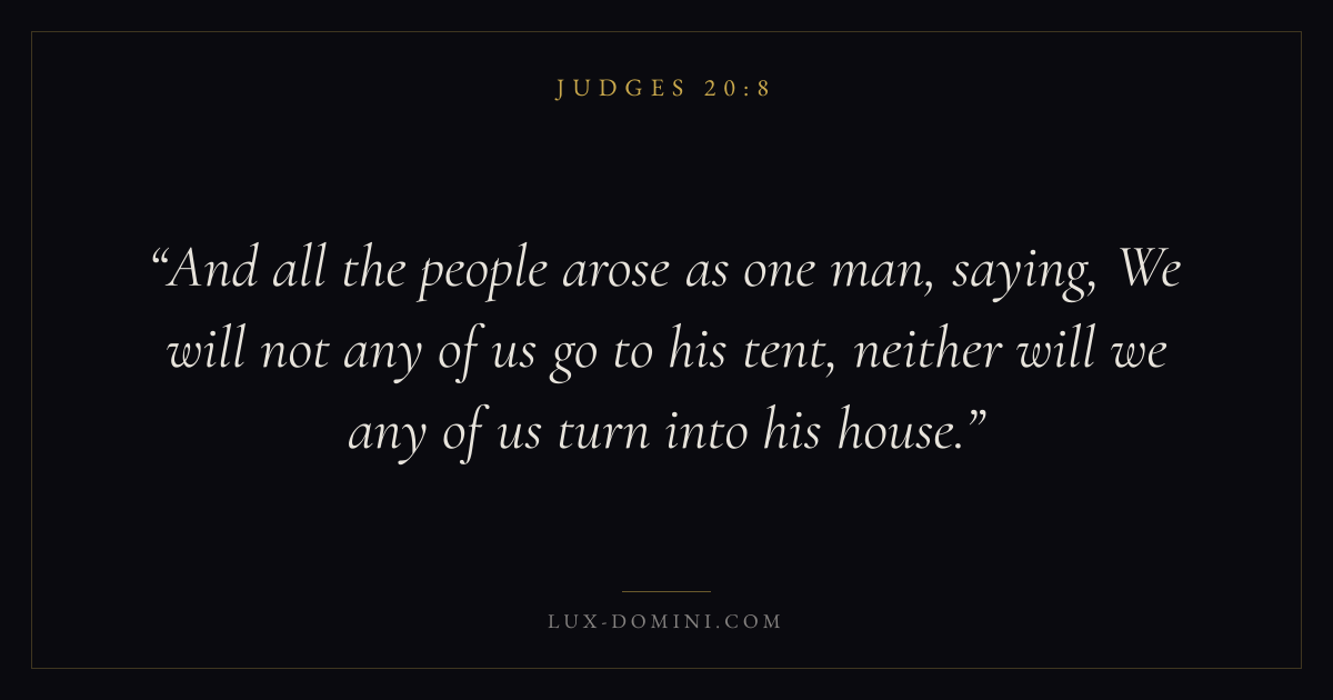 And all the people arose as one man, saying, We will not any of us go to his tent, neither will we any of us turn into his house.