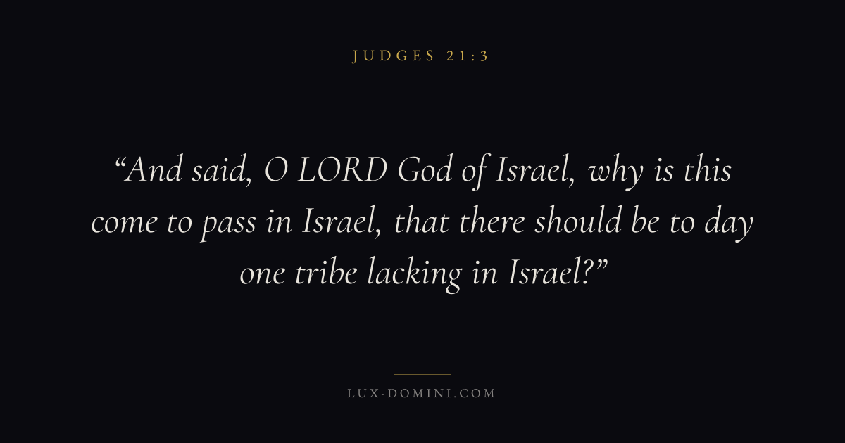 And said, O LORD God of Israel, why is this come to pass in Israel, that there should be to day one tribe lacking in Israel?
