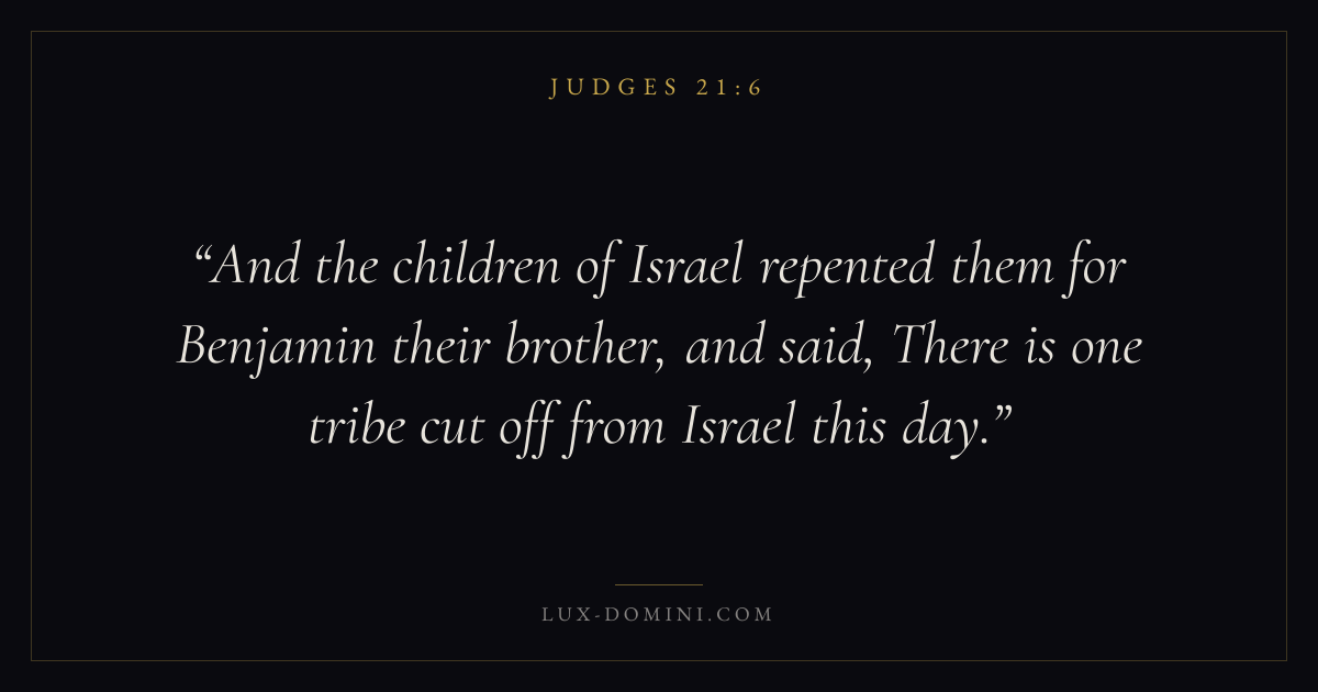 And the children of Israel repented them for Benjamin their brother, and said, There is one tribe cut off from Israel this day.