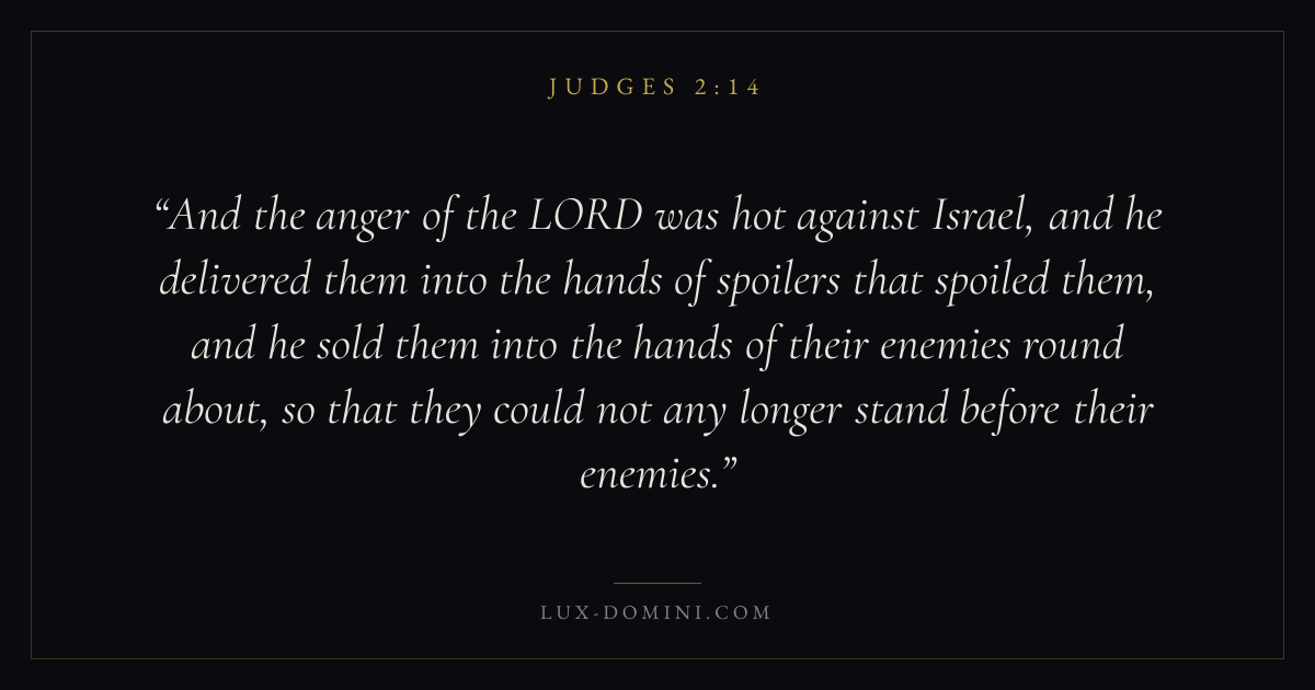 And the anger of the LORD was hot against Israel, and he delivered them into the hands of spoilers that spoiled them, and he sold them into the hands of their enemies round about, so that they could not any longer stand before their enemies.