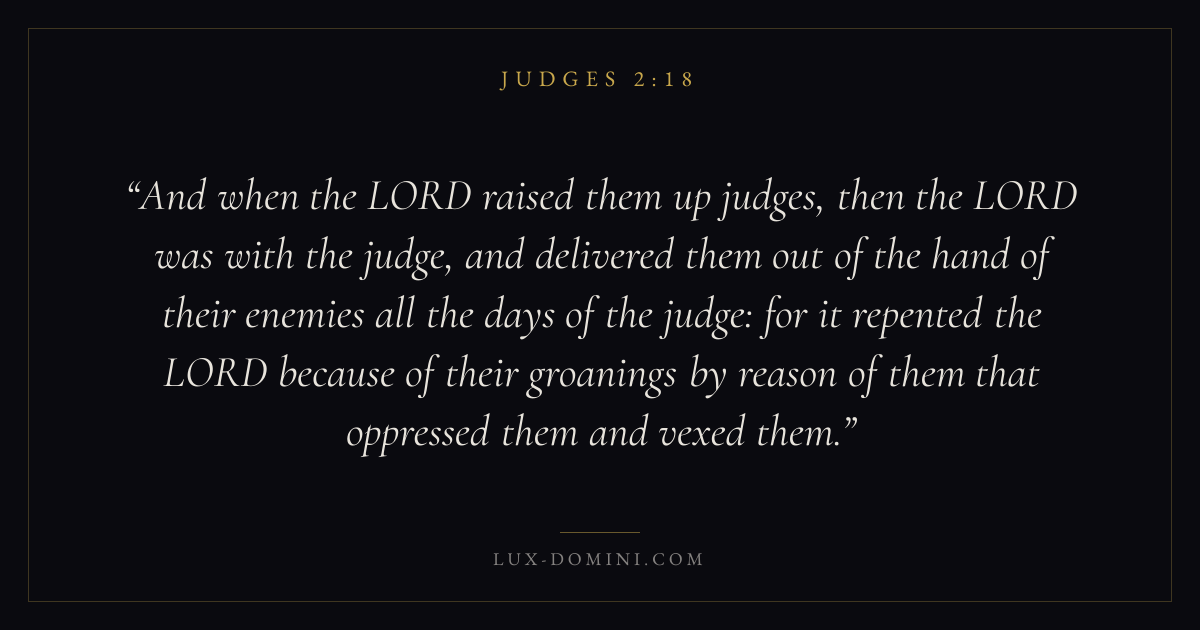 And when the LORD raised them up judges, then the LORD was with the judge, and delivered them out of the hand of their enemies all the days of the judge: for it repented the LORD because of their groanings by reason of them that oppressed them and vexed them.