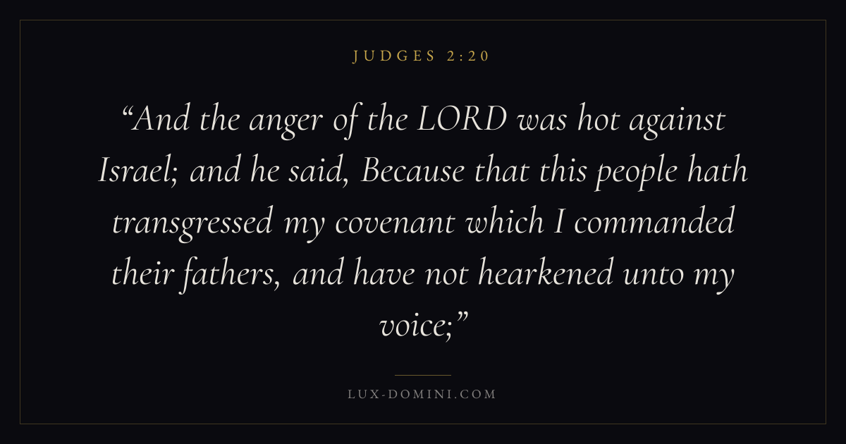 And the anger of the LORD was hot against Israel; and he said, Because that this people hath transgressed my covenant which I commanded their fathers, and have not hearkened unto my voice;