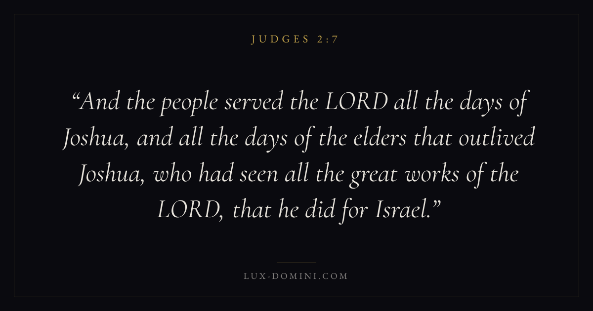 And the people served the LORD all the days of Joshua, and all the days of the elders that outlived Joshua, who had seen all the great works of the LORD, that he did for Israel.