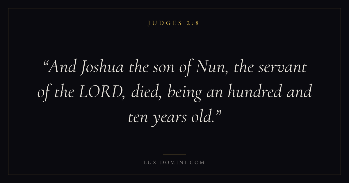 And Joshua the son of Nun, the servant of the LORD, died, being an hundred and ten years old.