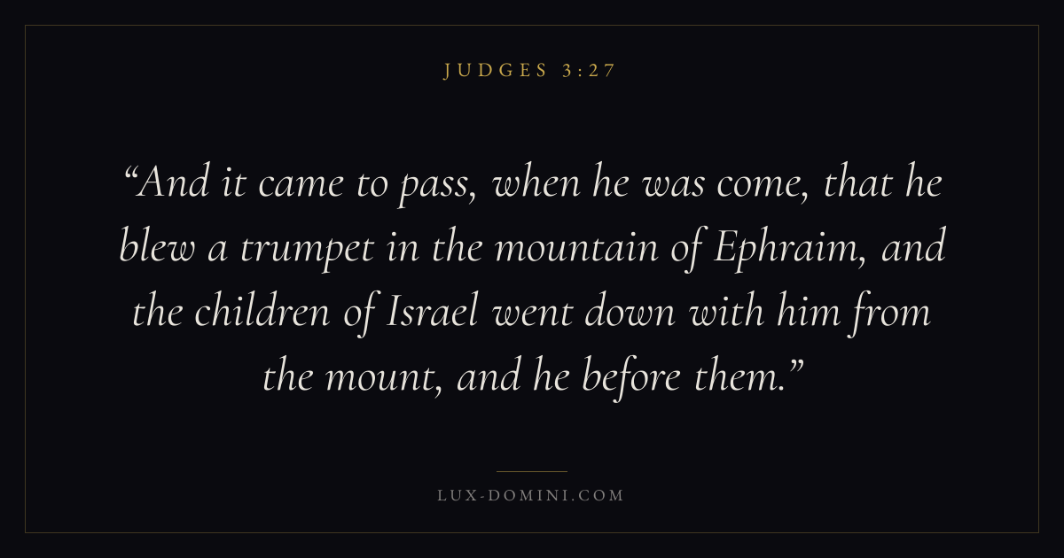 And it came to pass, when he was come, that he blew a trumpet in the mountain of Ephraim, and the children of Israel went down with him from the mount, and he before them.