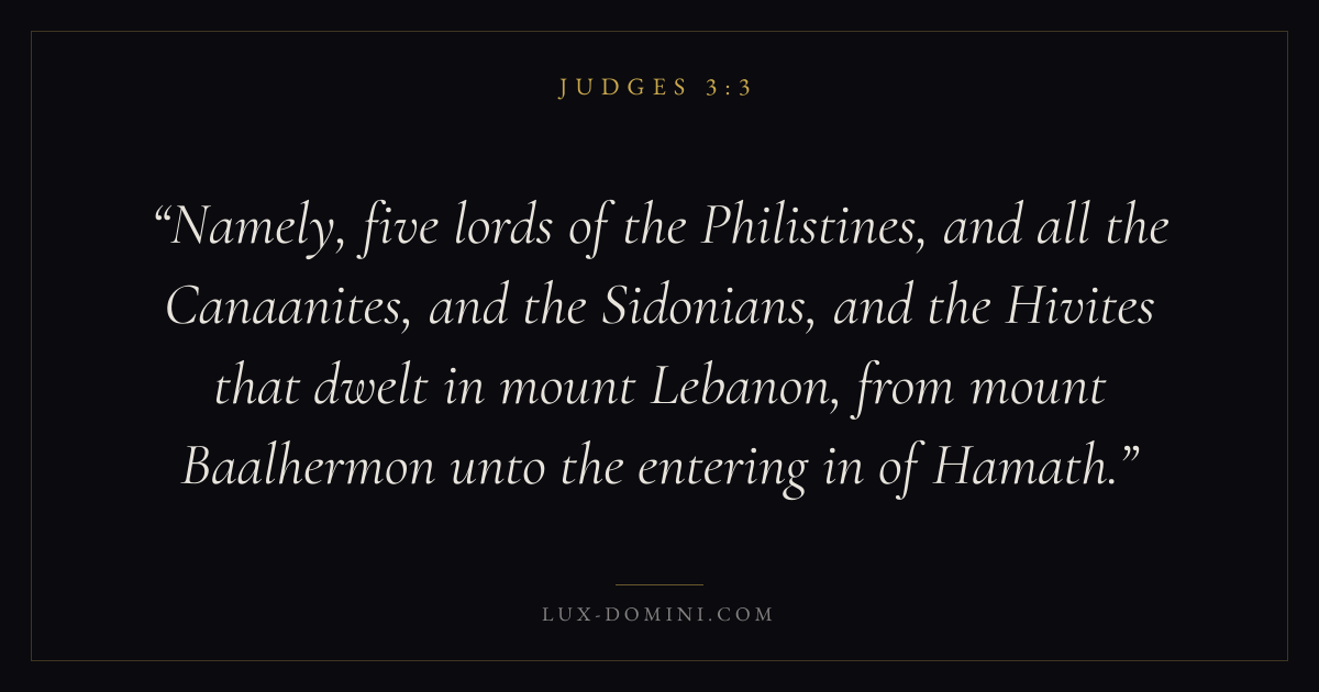 Namely, five lords of the Philistines, and all the Canaanites, and the Sidonians, and the Hivites that dwelt in mount Lebanon, from mount Baalhermon unto the entering in of Hamath.