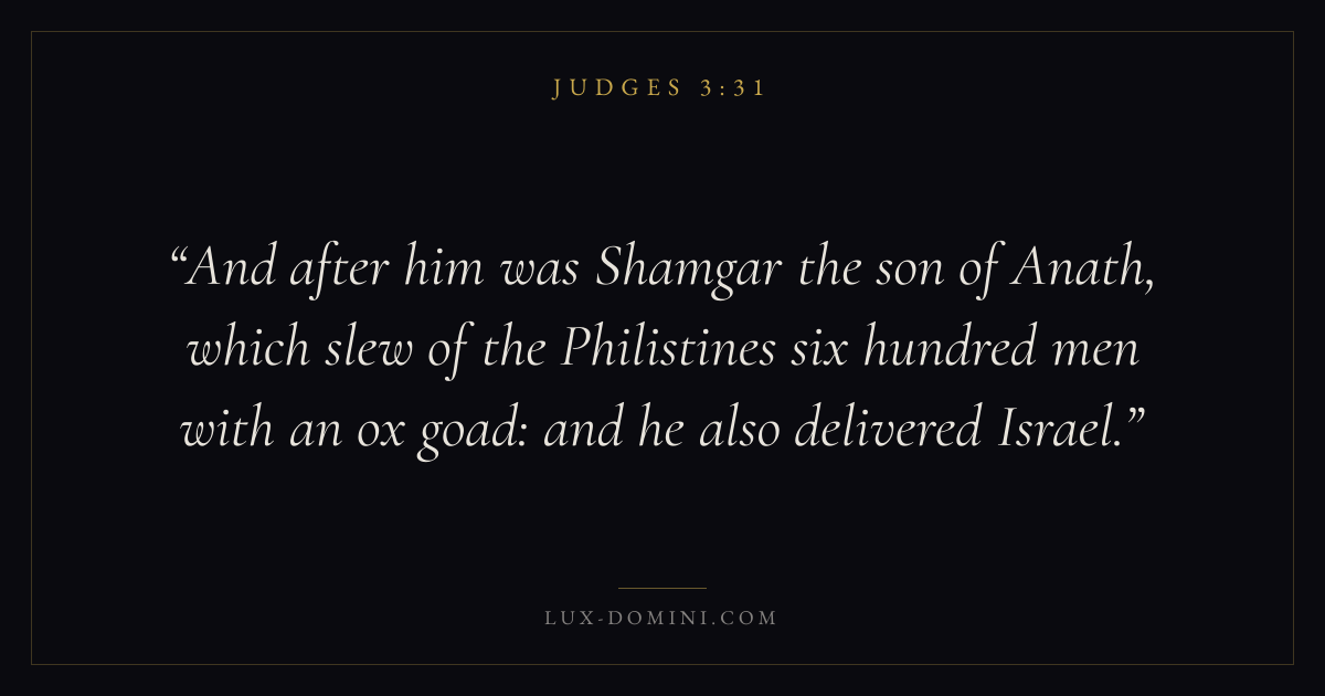 And after him was Shamgar the son of Anath, which slew of the Philistines six hundred men with an ox goad: and he also delivered Israel.