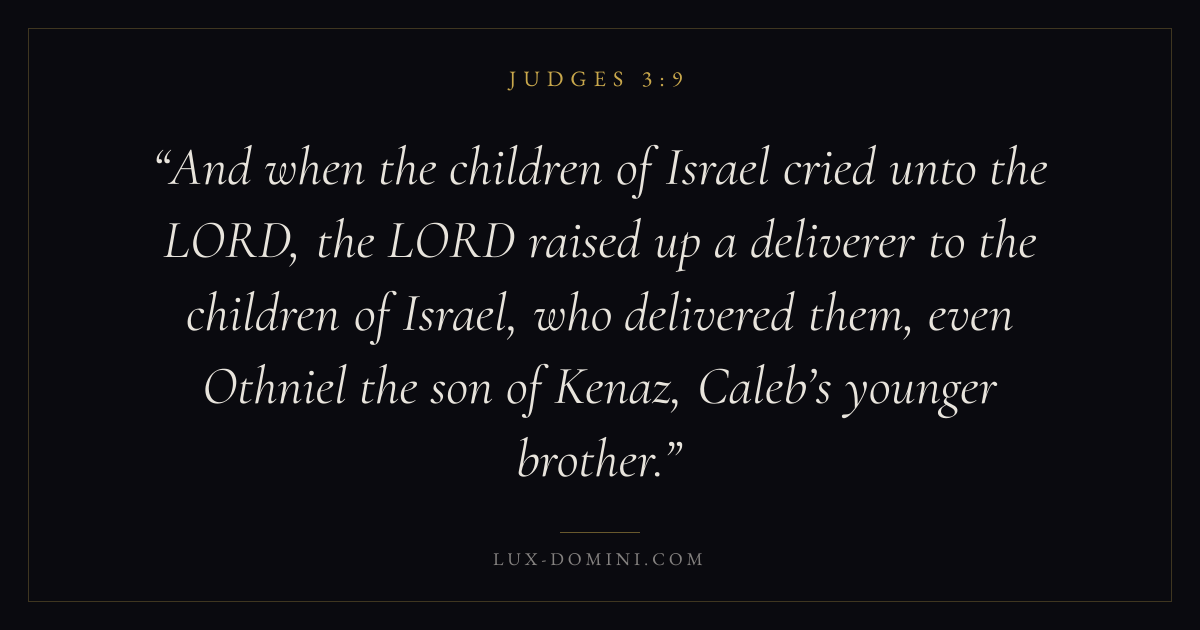 And when the children of Israel cried unto the LORD, the LORD raised up a deliverer to the children of Israel, who delivered them, even Othniel the son of Kenaz, Caleb’s younger brother.