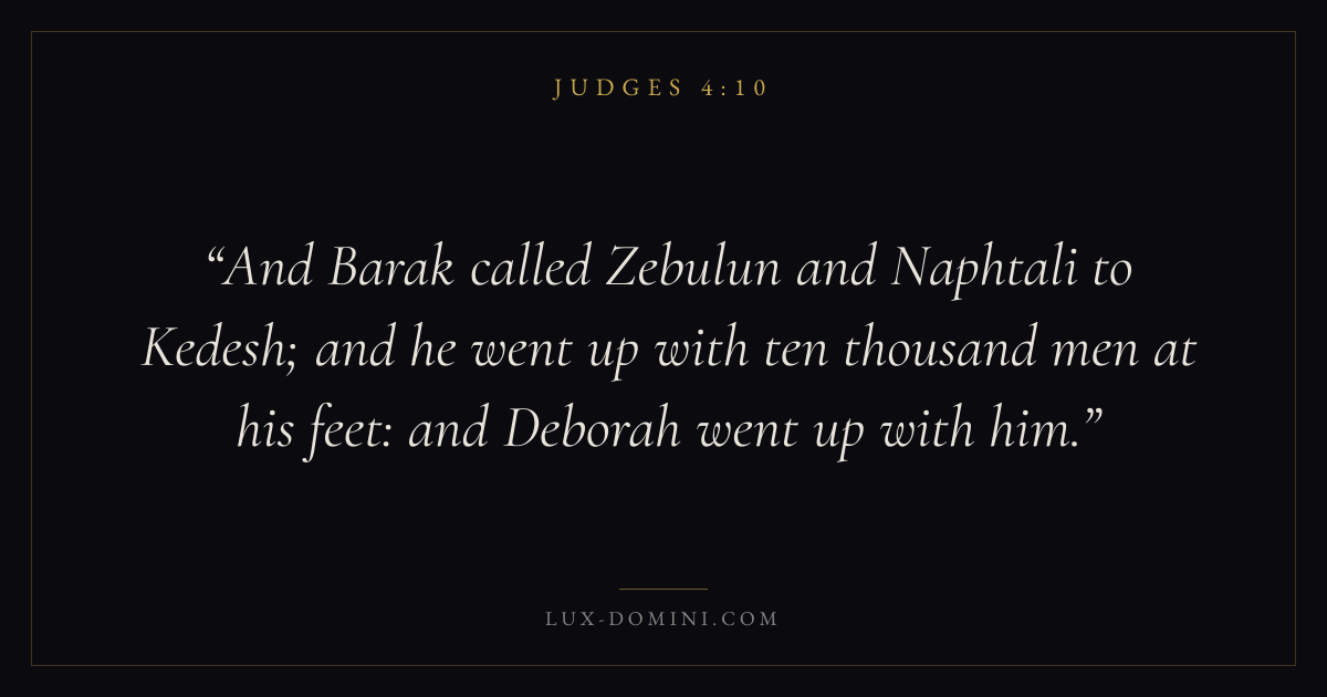 And Barak called Zebulun and Naphtali to Kedesh; and he went up with ten thousand men at his feet: and Deborah went up with him.