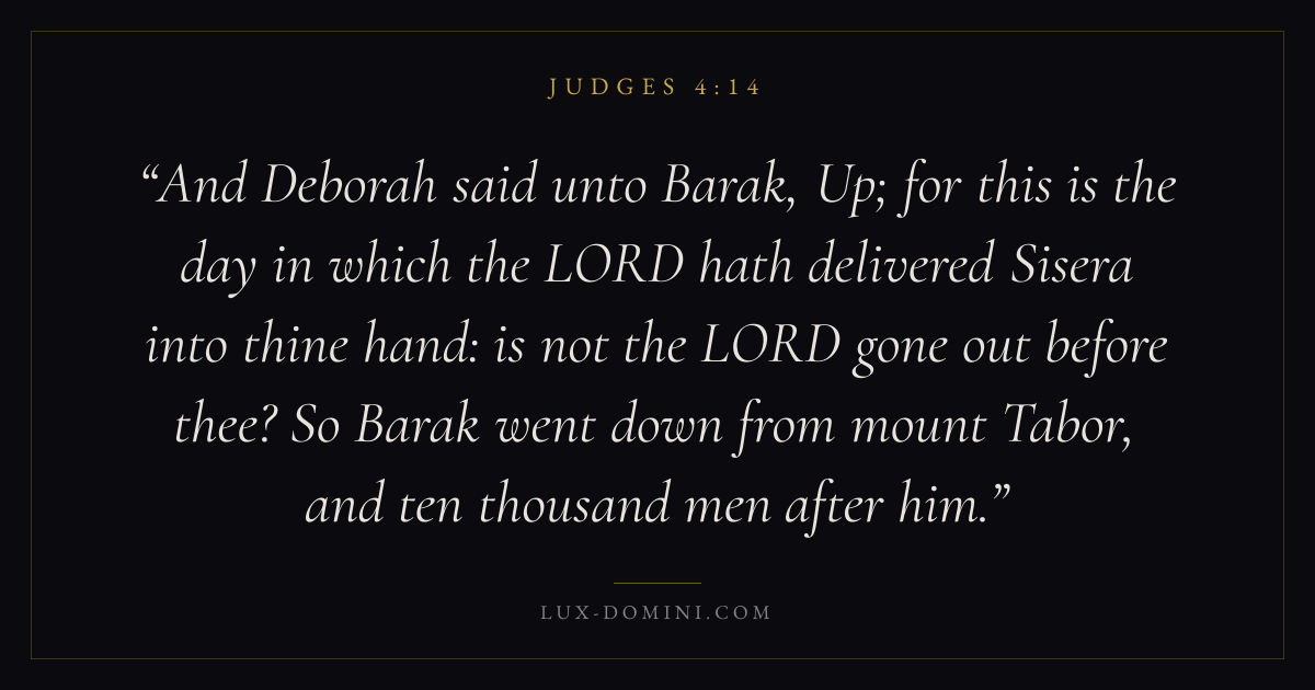 And Deborah said unto Barak, Up; for this is the day in which the LORD hath delivered Sisera into thine hand: is not the LORD gone out before thee? So Barak went down from mount Tabor, and ten thousand men after him.