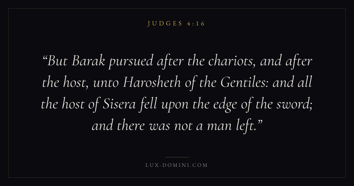 But Barak pursued after the chariots, and after the host, unto Harosheth of the Gentiles: and all the host of Sisera fell upon the edge of the sword; and there was not a man left.