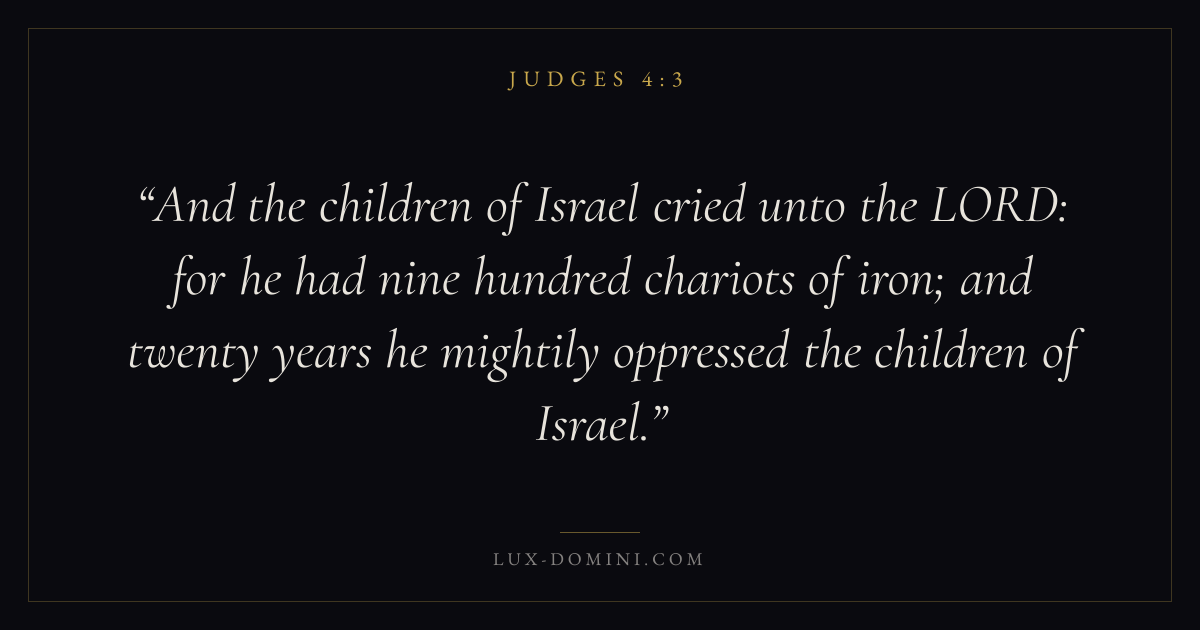 And the children of Israel cried unto the LORD: for he had nine hundred chariots of iron; and twenty years he mightily oppressed the children of Israel.