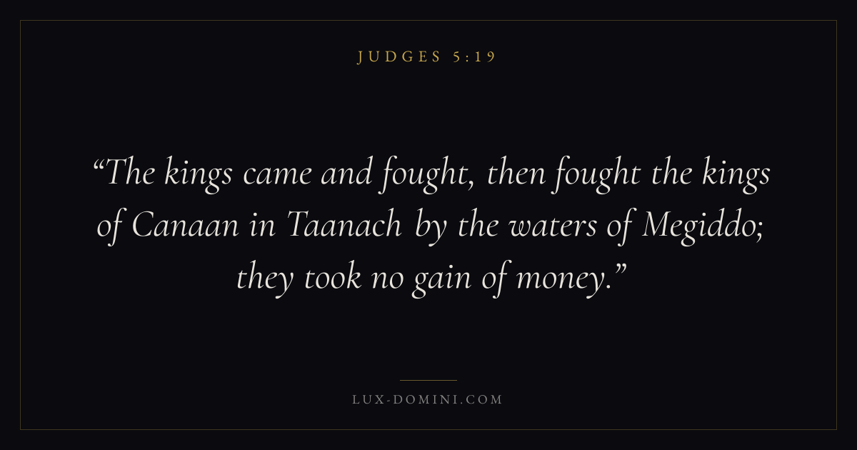 The kings came and fought, then fought the kings of Canaan in Taanach by the waters of Megiddo; they took no gain of money.