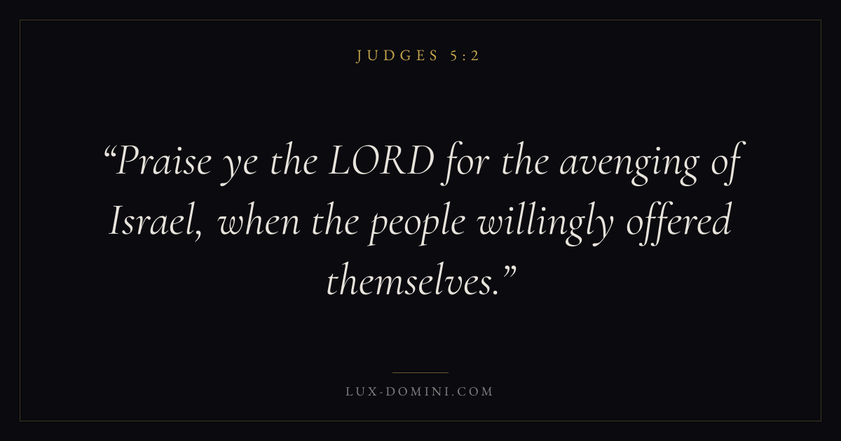 Praise ye the LORD for the avenging of Israel, when the people willingly offered themselves.