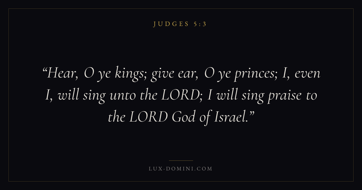 Hear, O ye kings; give ear, O ye princes; I, even I, will sing unto the LORD; I will sing praise to the LORD God of Israel.