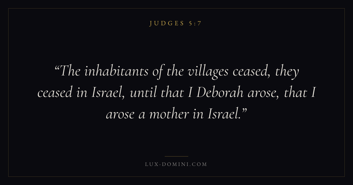 The inhabitants of the villages ceased, they ceased in Israel, until that I Deborah arose, that I arose a mother in Israel.