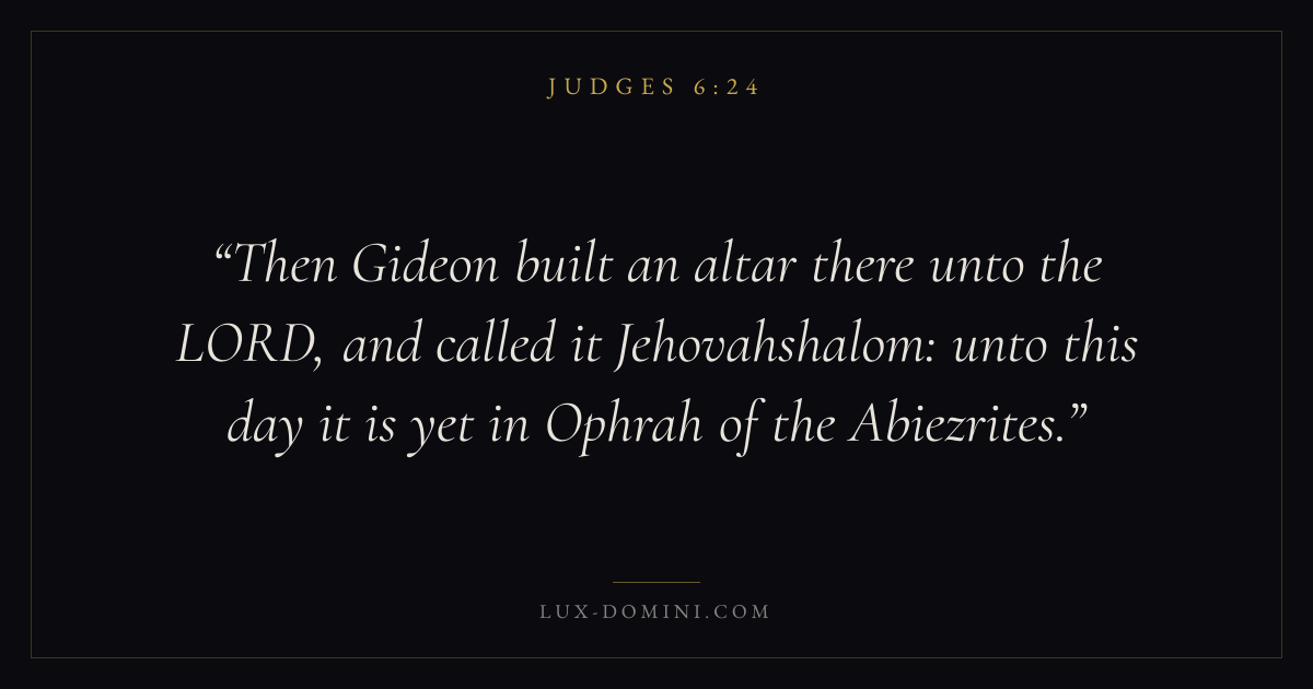 Then Gideon built an altar there unto the LORD, and called it Jehovahshalom: unto this day it is yet in Ophrah of the Abiezrites.