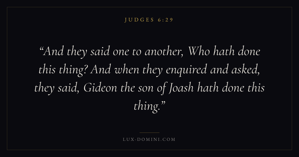 And they said one to another, Who hath done this thing? And when they enquired and asked, they said, Gideon the son of Joash hath done this thing.