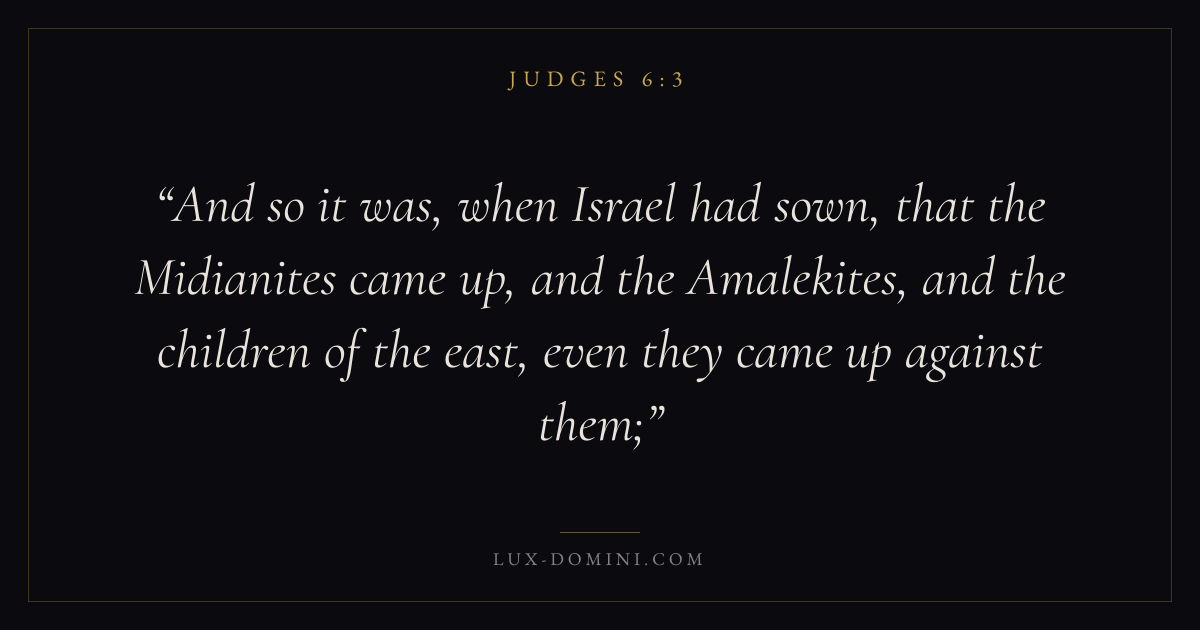 And so it was, when Israel had sown, that the Midianites came up, and the Amalekites, and the children of the east, even they came up against them;