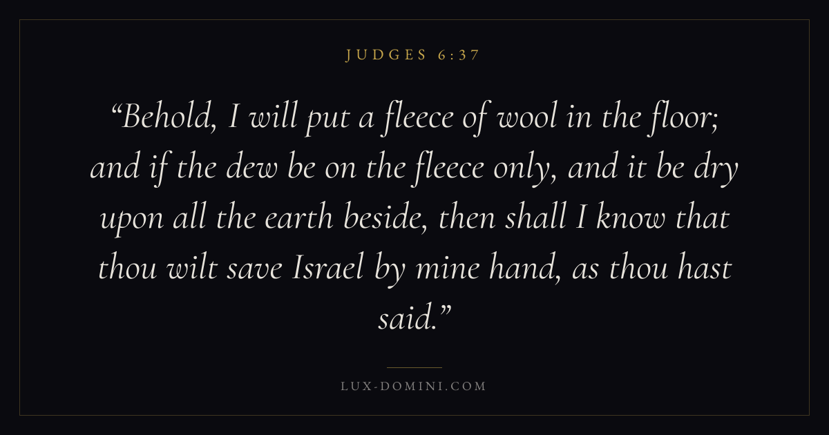 Behold, I will put a fleece of wool in the floor; and if the dew be on the fleece only, and it be dry upon all the earth beside, then shall I know that thou wilt save Israel by mine hand, as thou hast said.