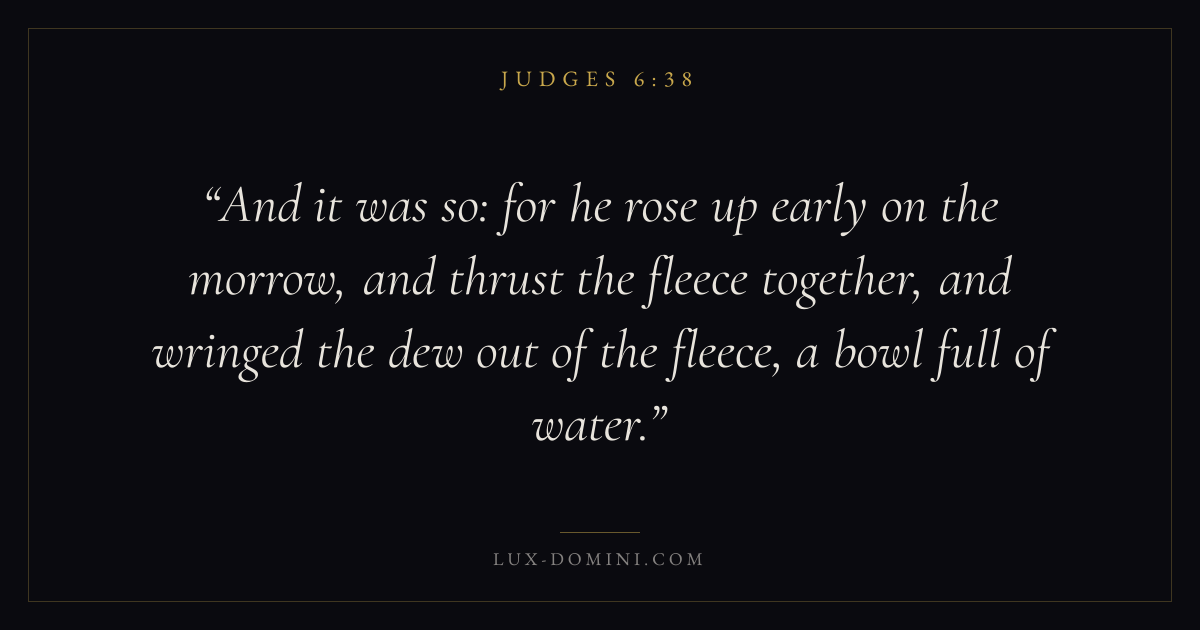 And it was so: for he rose up early on the morrow, and thrust the fleece together, and wringed the dew out of the fleece, a bowl full of water.