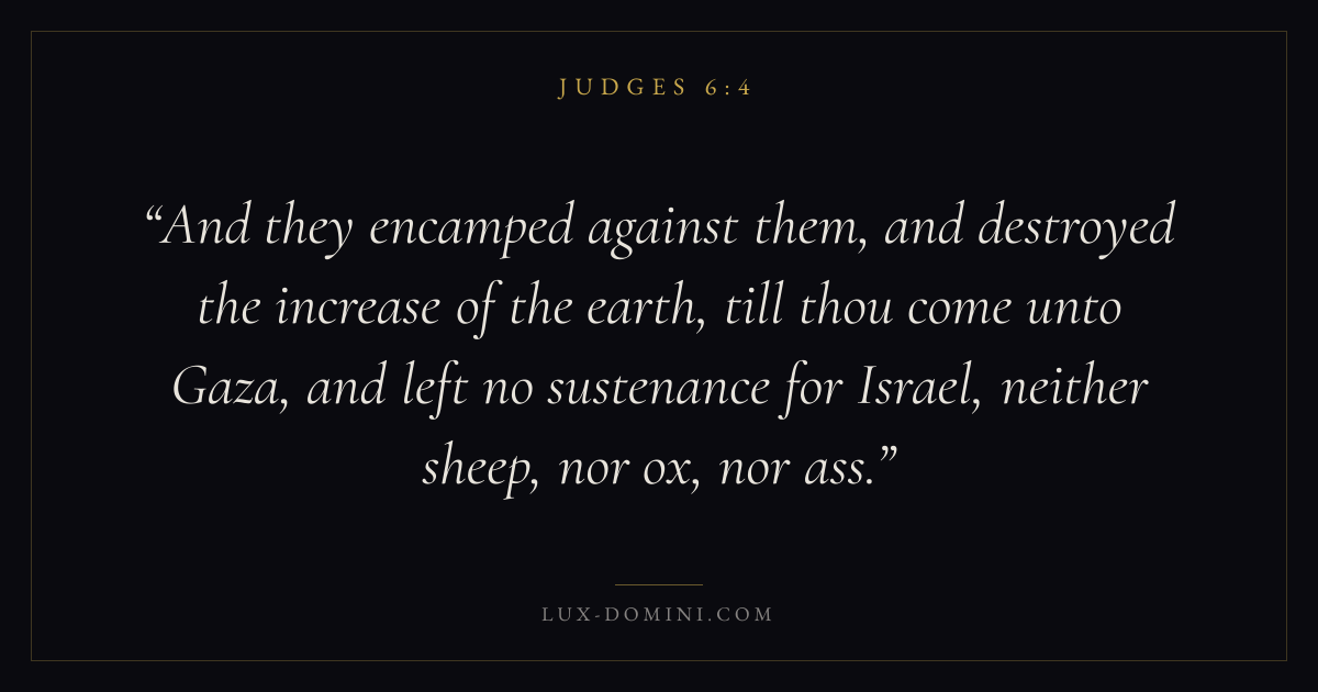 And they encamped against them, and destroyed the increase of the earth, till thou come unto Gaza, and left no sustenance for Israel, neither sheep, nor ox, nor ass.