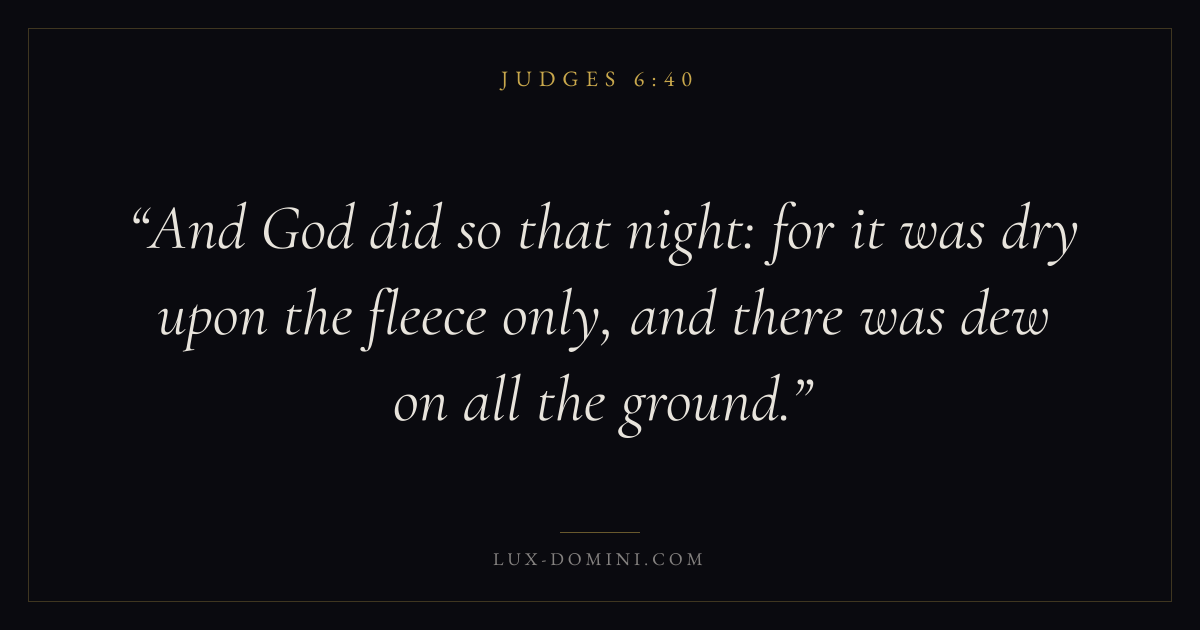 And God did so that night: for it was dry upon the fleece only, and there was dew on all the ground.