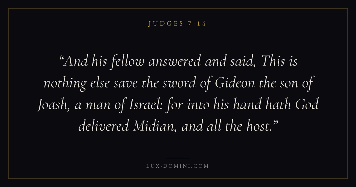And his fellow answered and said, This is nothing else save the sword of Gideon the son of Joash, a man of Israel: for into his hand hath God delivered Midian, and all the host.