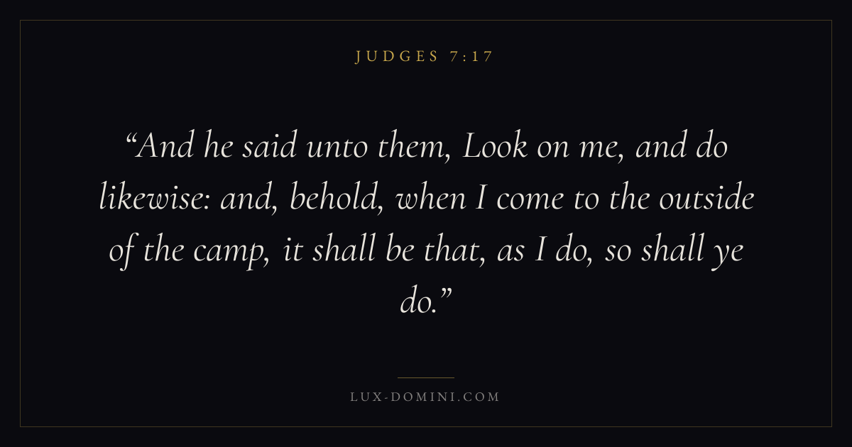 And he said unto them, Look on me, and do likewise: and, behold, when I come to the outside of the camp, it shall be that, as I do, so shall ye do.