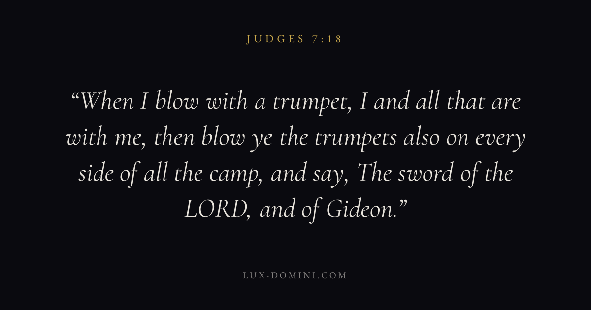 When I blow with a trumpet, I and all that are with me, then blow ye the trumpets also on every side of all the camp, and say, The sword of the LORD, and of Gideon.