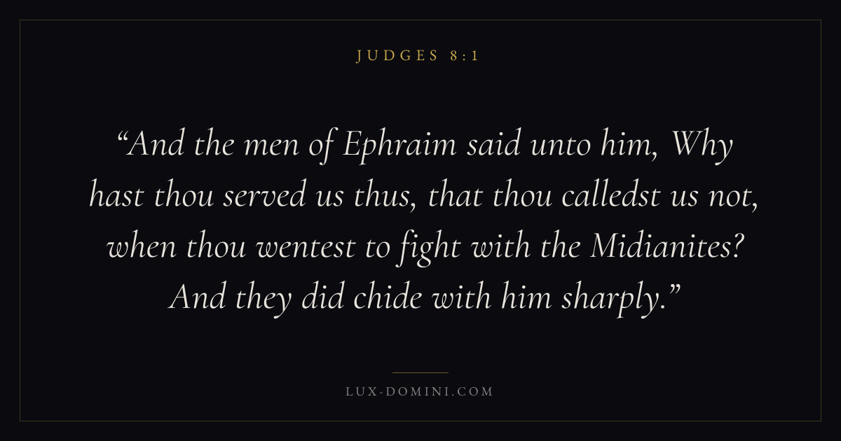 And the men of Ephraim said unto him, Why hast thou served us thus, that thou calledst us not, when thou wentest to fight with the Midianites? And they did chide with him sharply.