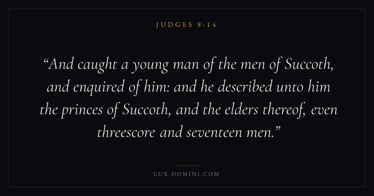 And caught a young man of the men of Succoth, and enquired of him: and he described unto him the princes of Succoth, and the elders thereof, even threescore and seventeen men.