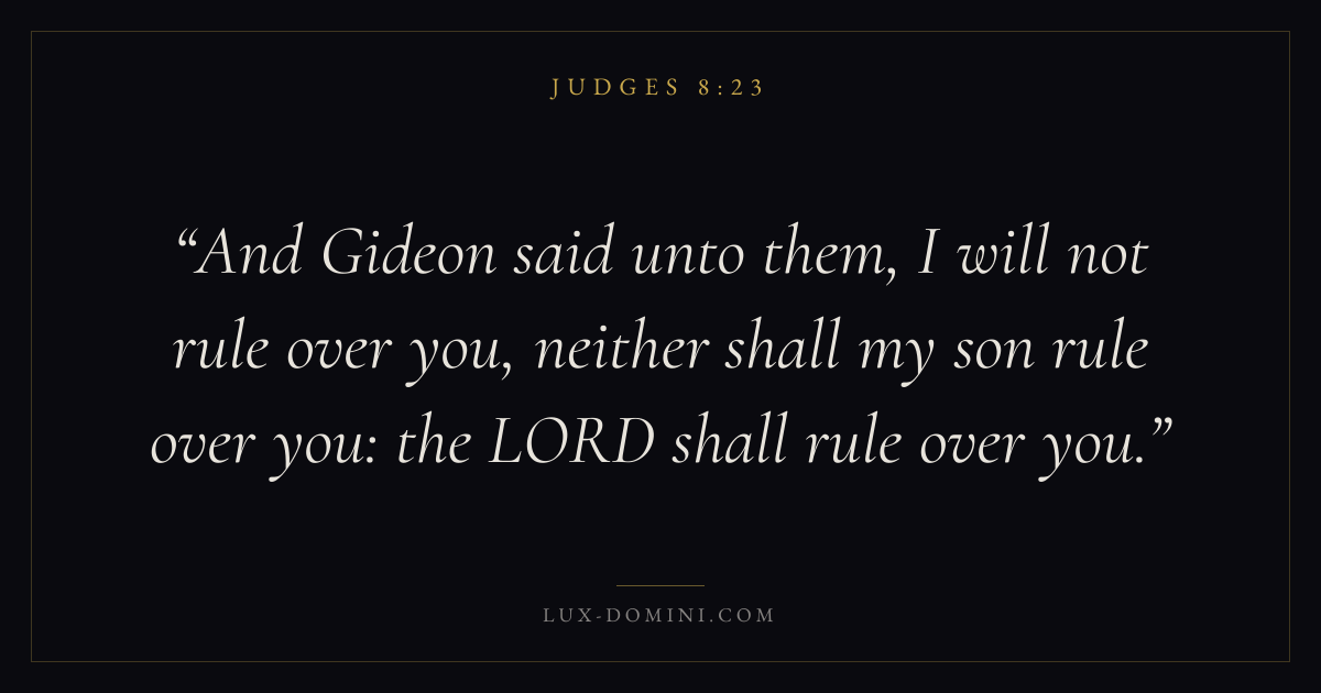 And Gideon said unto them, I will not rule over you, neither shall my son rule over you: the LORD shall rule over you.