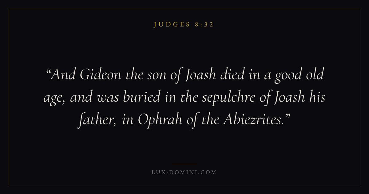 And Gideon the son of Joash died in a good old age, and was buried in the sepulchre of Joash his father, in Ophrah of the Abiezrites.