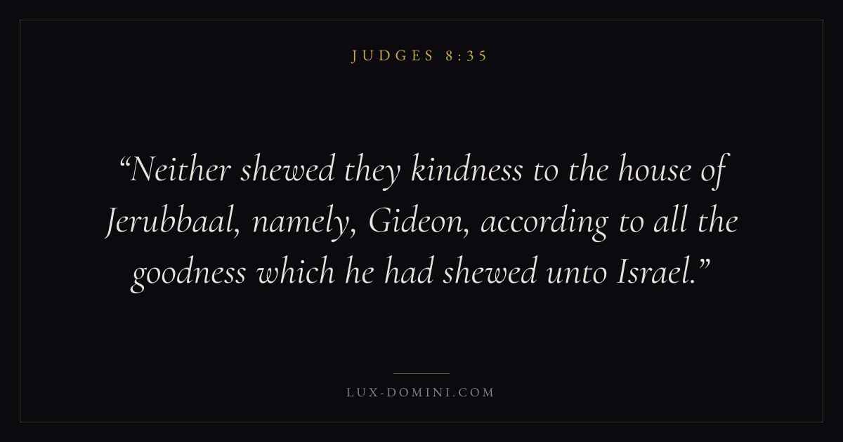 Neither shewed they kindness to the house of Jerubbaal, namely, Gideon, according to all the goodness which he had shewed unto Israel.